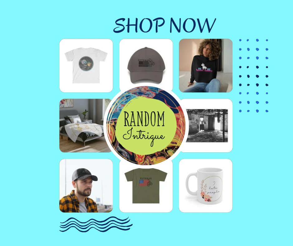 Random Intrigue is designed to be just that random, so you will find shirts, mugs, photography, blankets, and more... This all started with a dream to bring some mindful beauty into a harsh world.