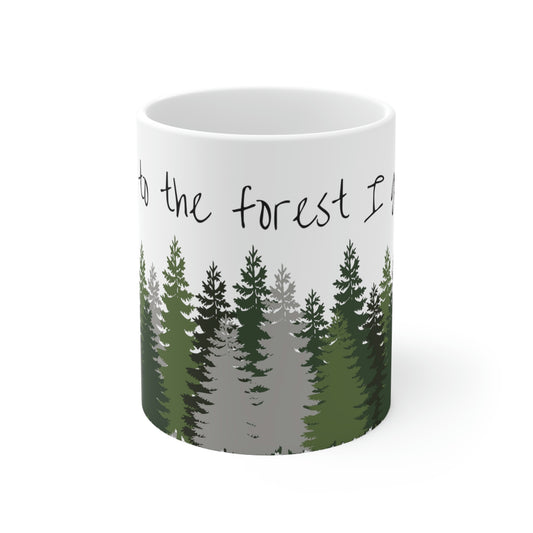 Into the forest I go... Mug; 11 oz Ceramic Coffee Cup; John Muir Quote Mug