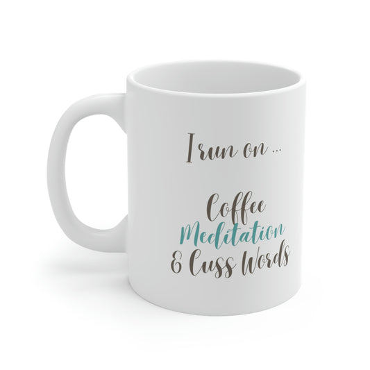 I Run on Coffee, Meditation, and Cuss Words, It's Called Balance Mug; 11oz Ceramic Coffee Cup