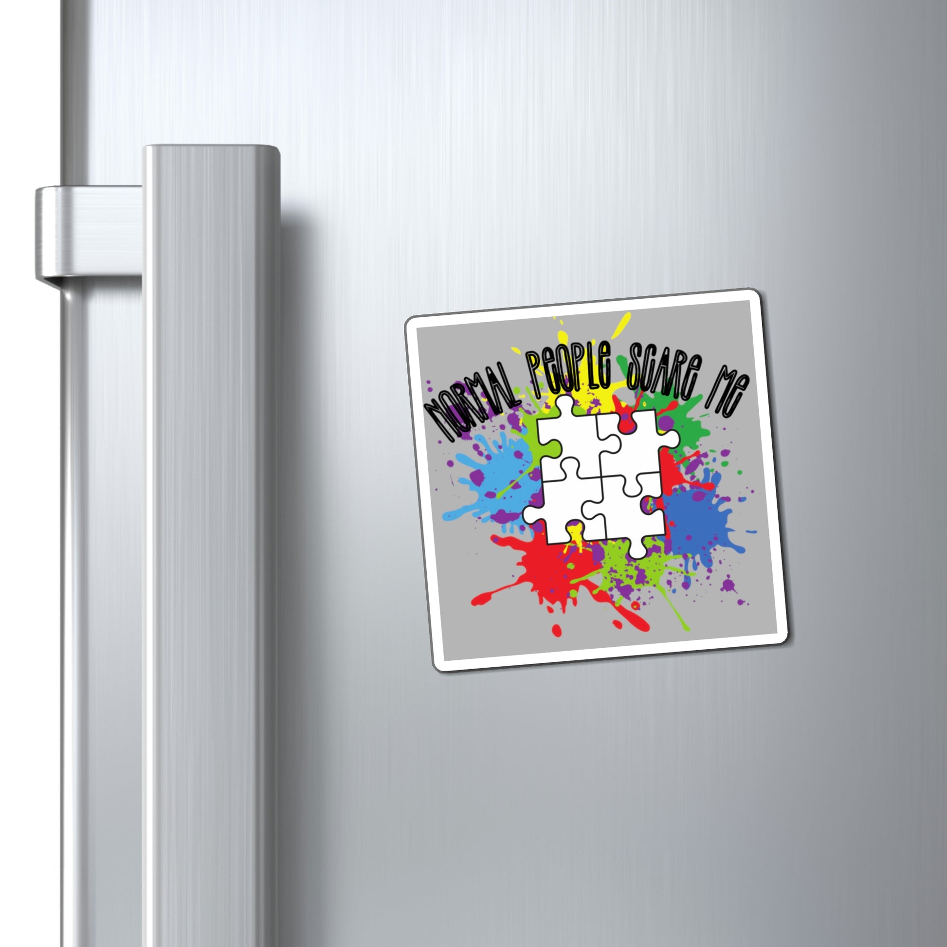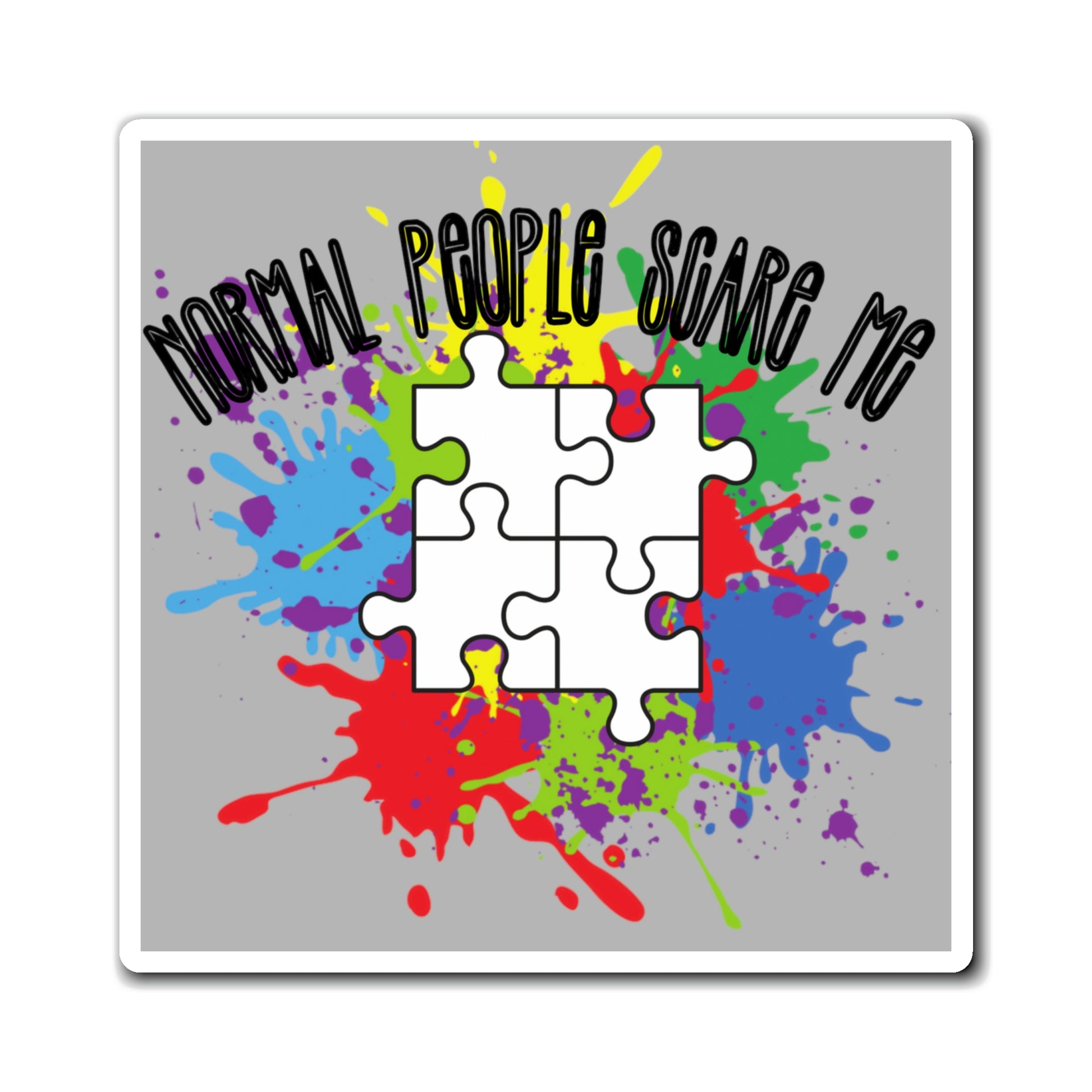 Your support for Autism Awareness, now available in magnets! Available in 3 sizes. Normal people scare me, with the signature puzzle pieces.