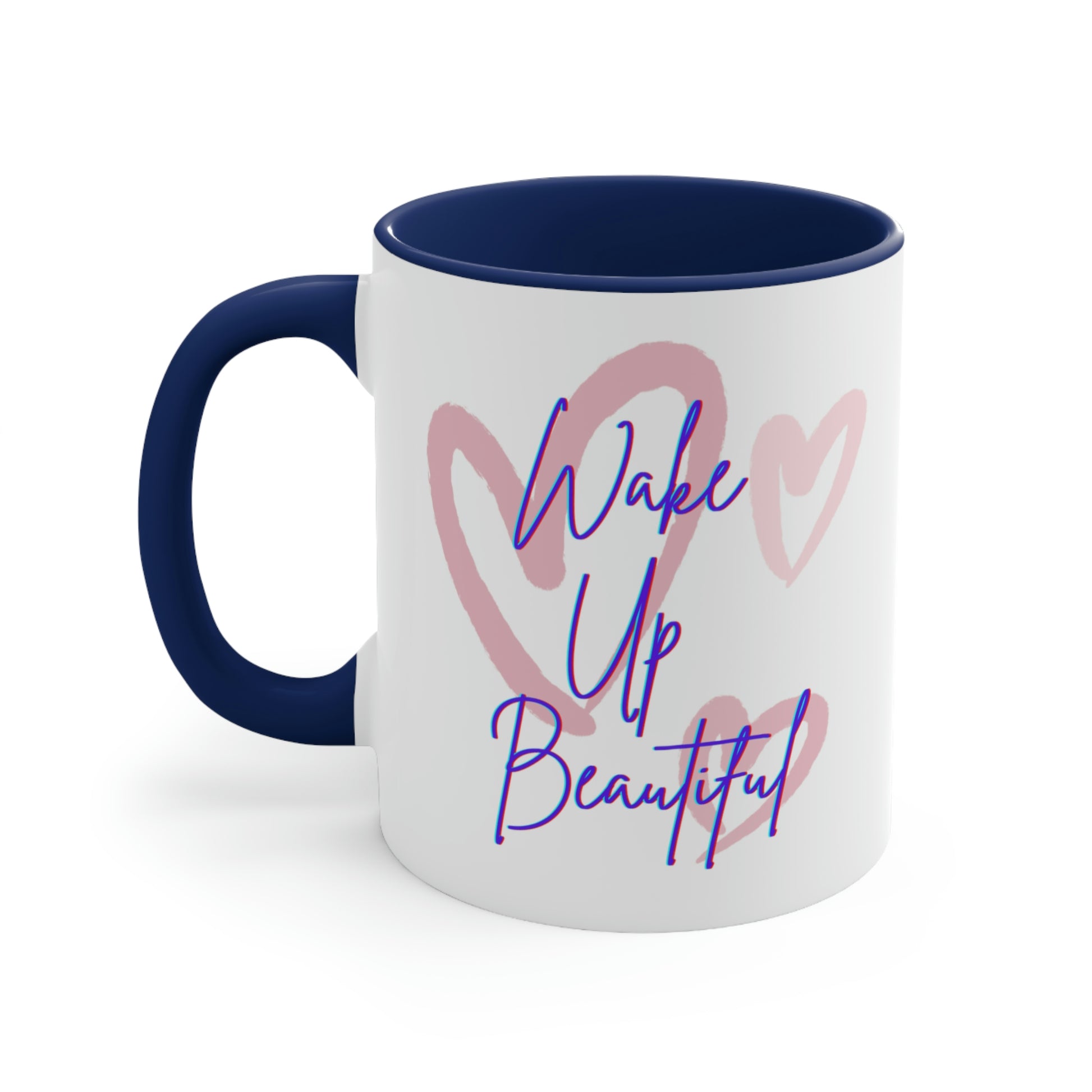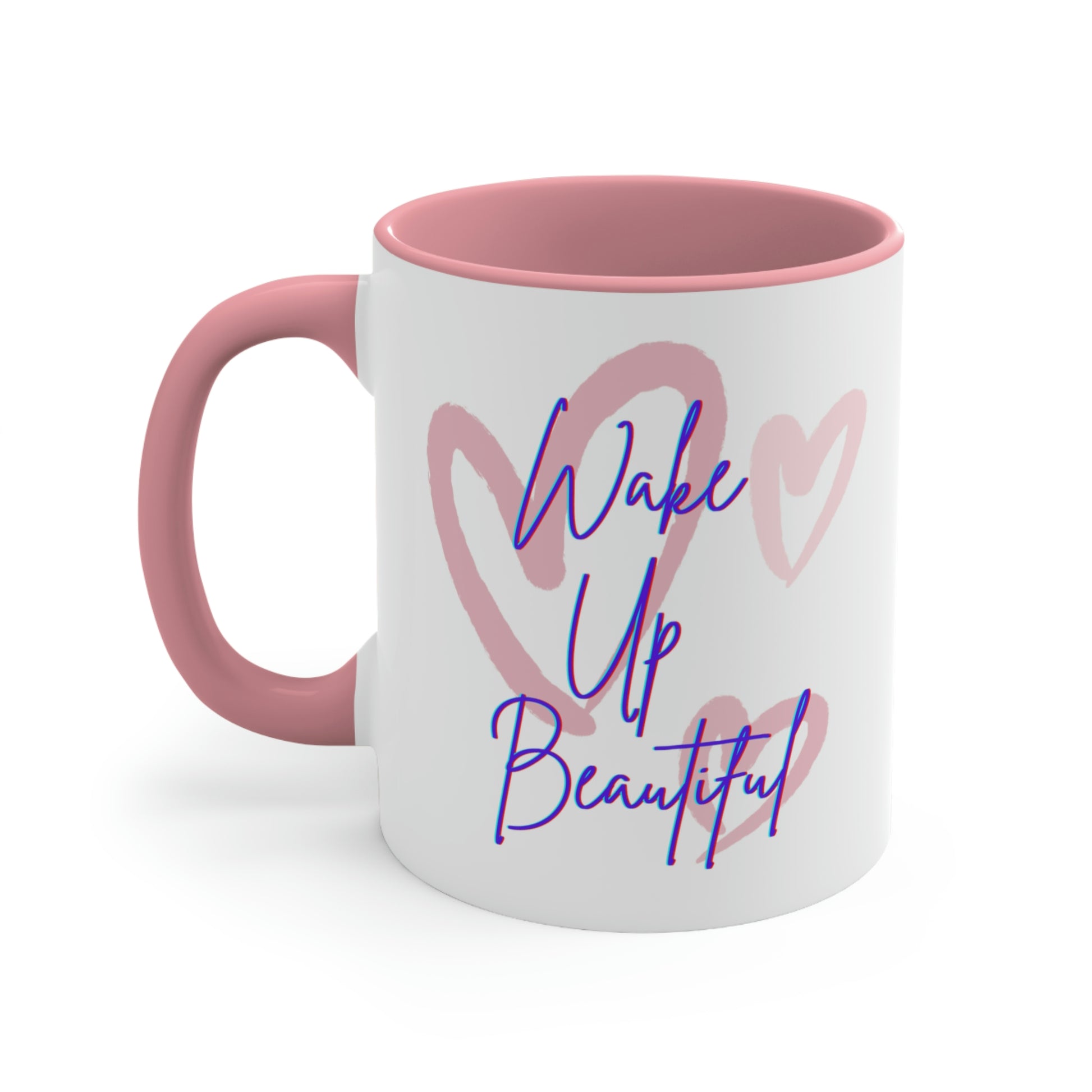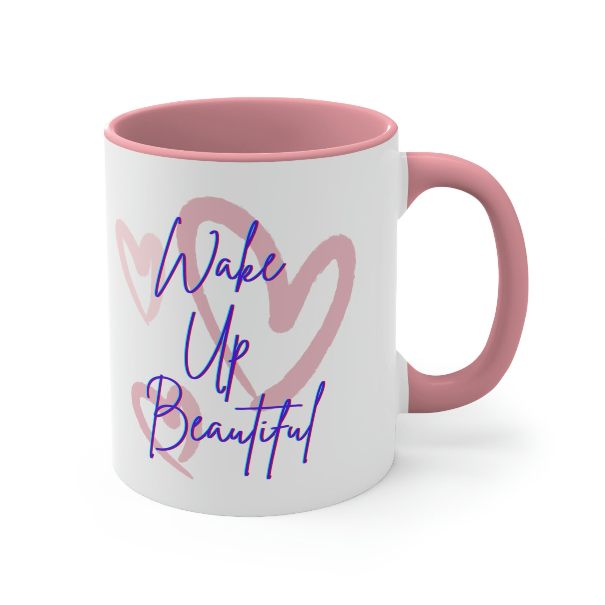 Wake Up Beautiful 11 oz Mug features a C-handle and a colored interior to match the exterior design. This cup is the perfect gift for your mom, wife, daughter, or sister to remind them of just how beautiful you think they are are, inside and out. Bring some beauty to your morning coffee or tea.