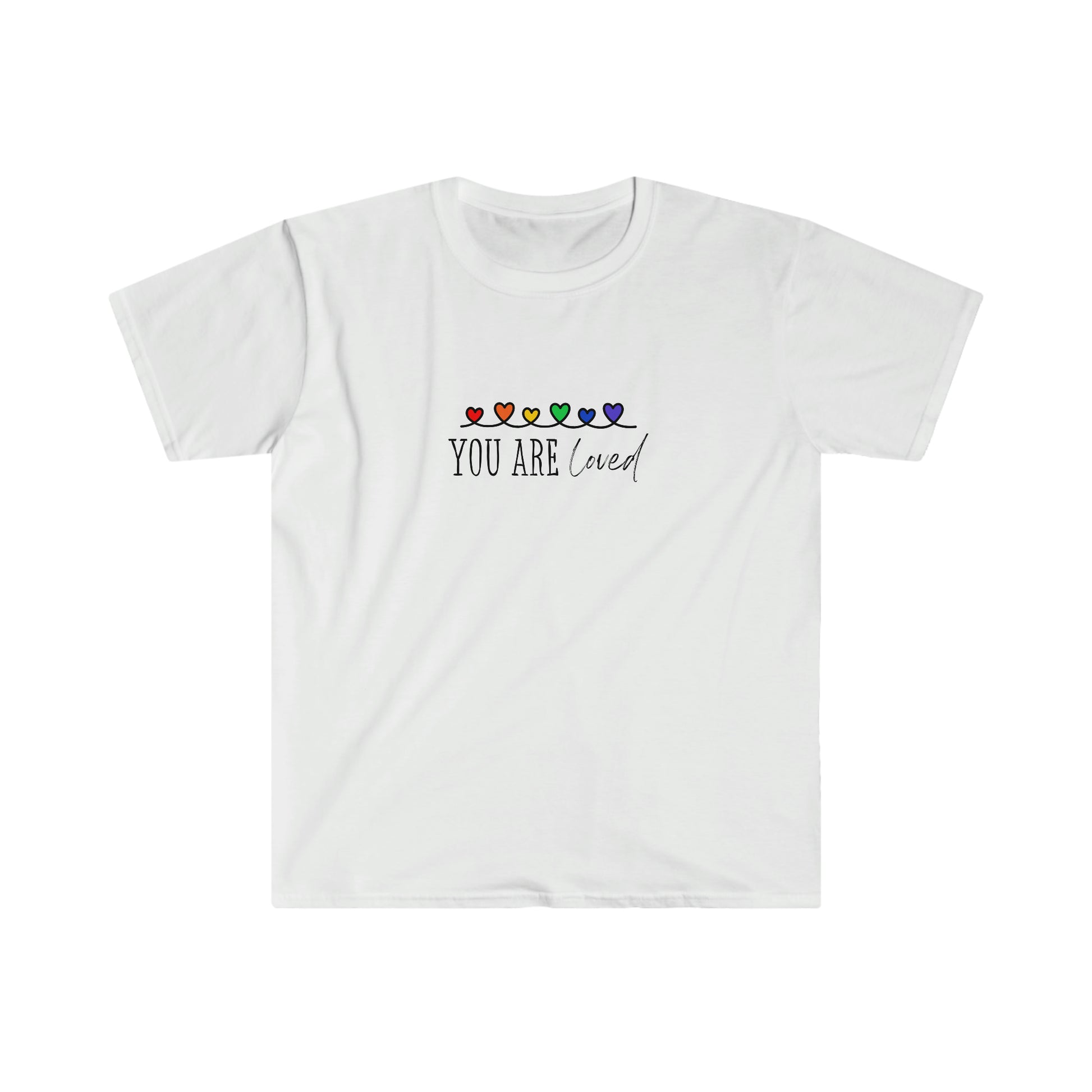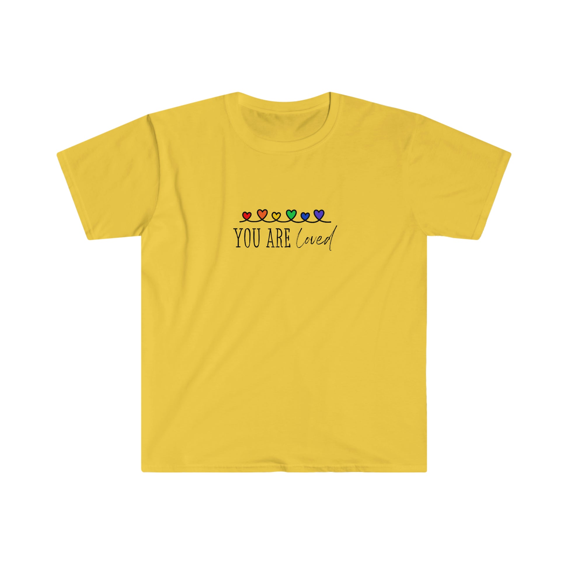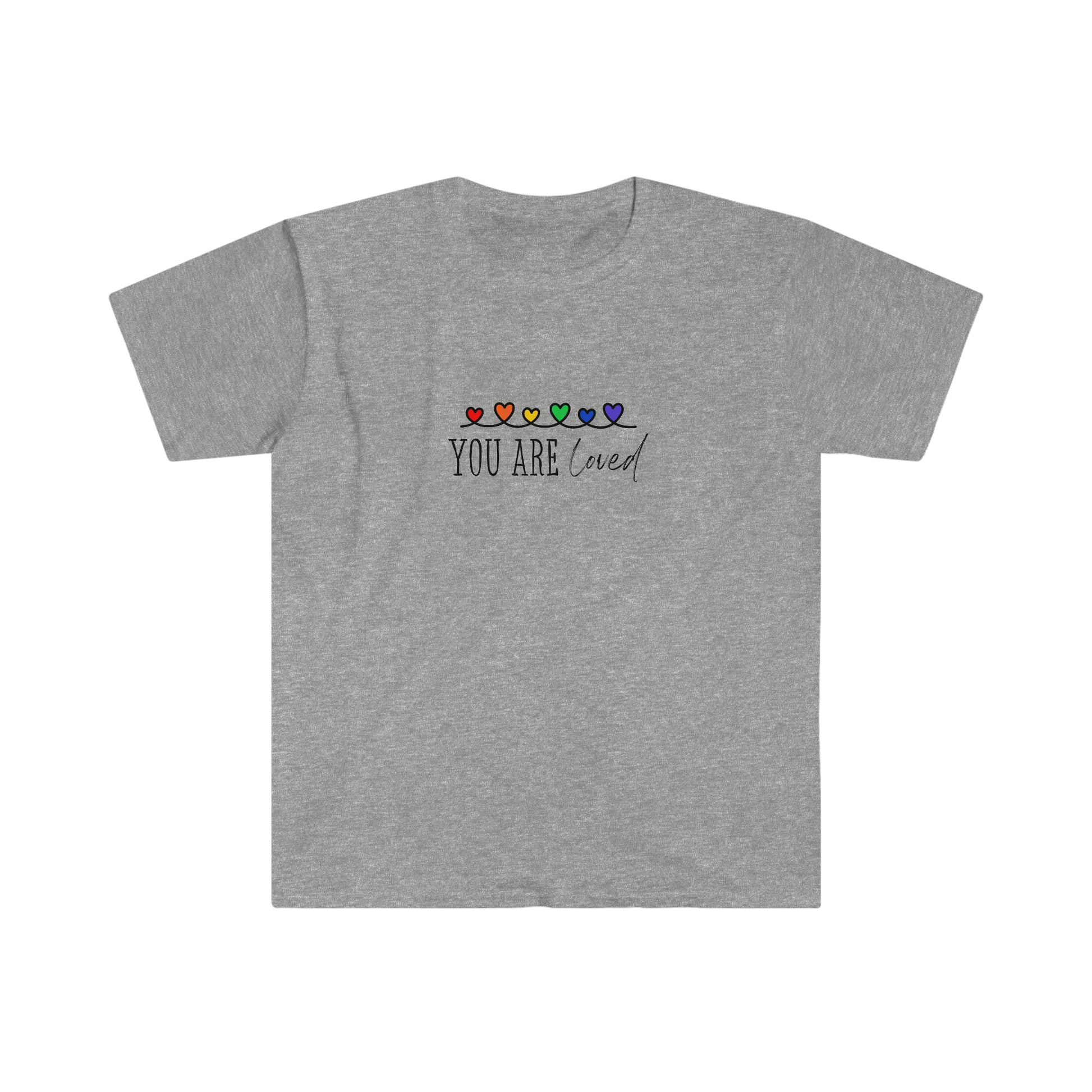 Everyone deserves and is worthy of love. Spread love, smiles, and positivity with this rainbow heart You are Loved shirt! The unisex soft-style t-shirt puts a new spin on casual comfort. Made from very soft materials, this tee is 100% cotton for solid colors. Heather colors and sports grey include polyester. The shoulders have twill tape for improved durability. There are no side seams. The collar is made with ribbed knitting to prevent curling damage.