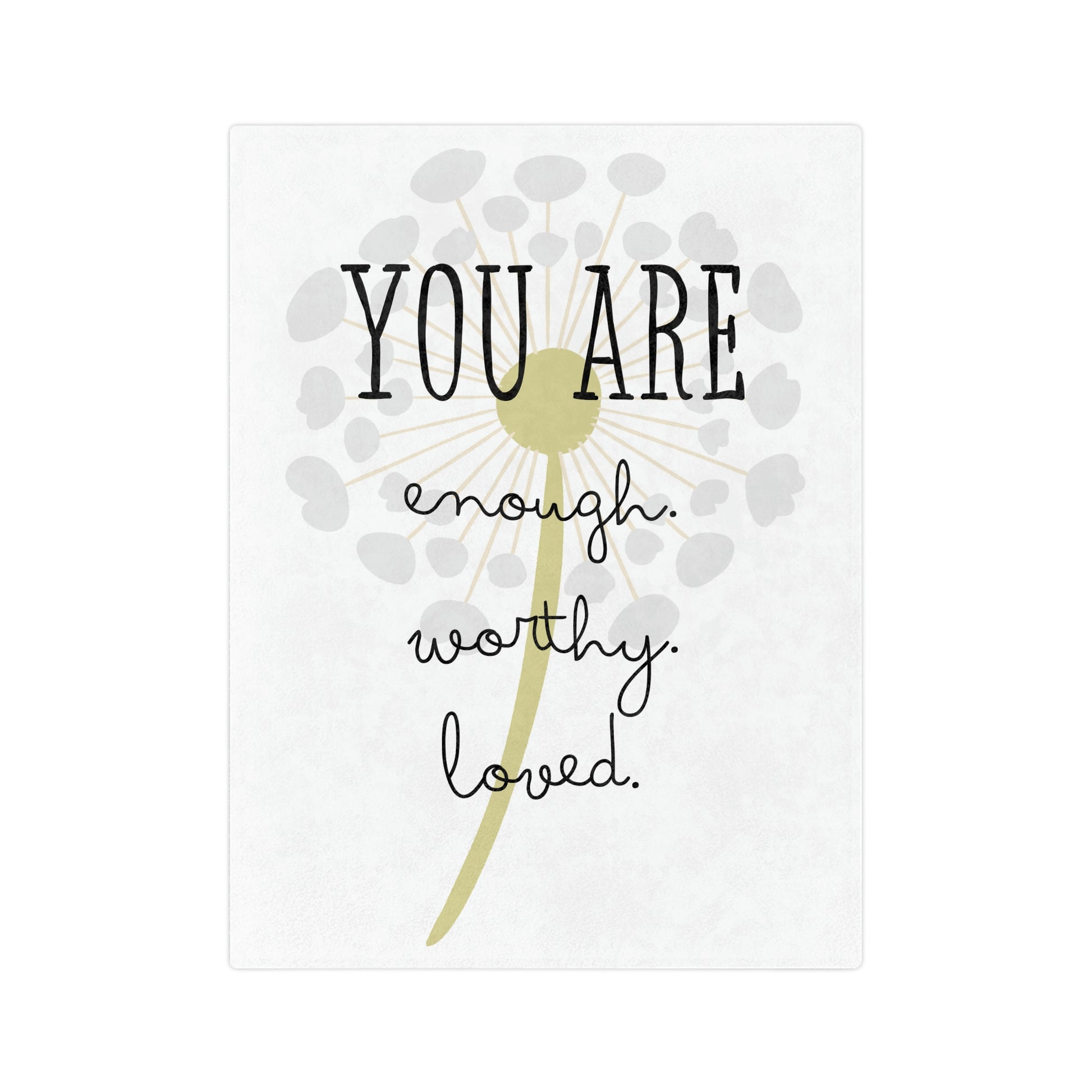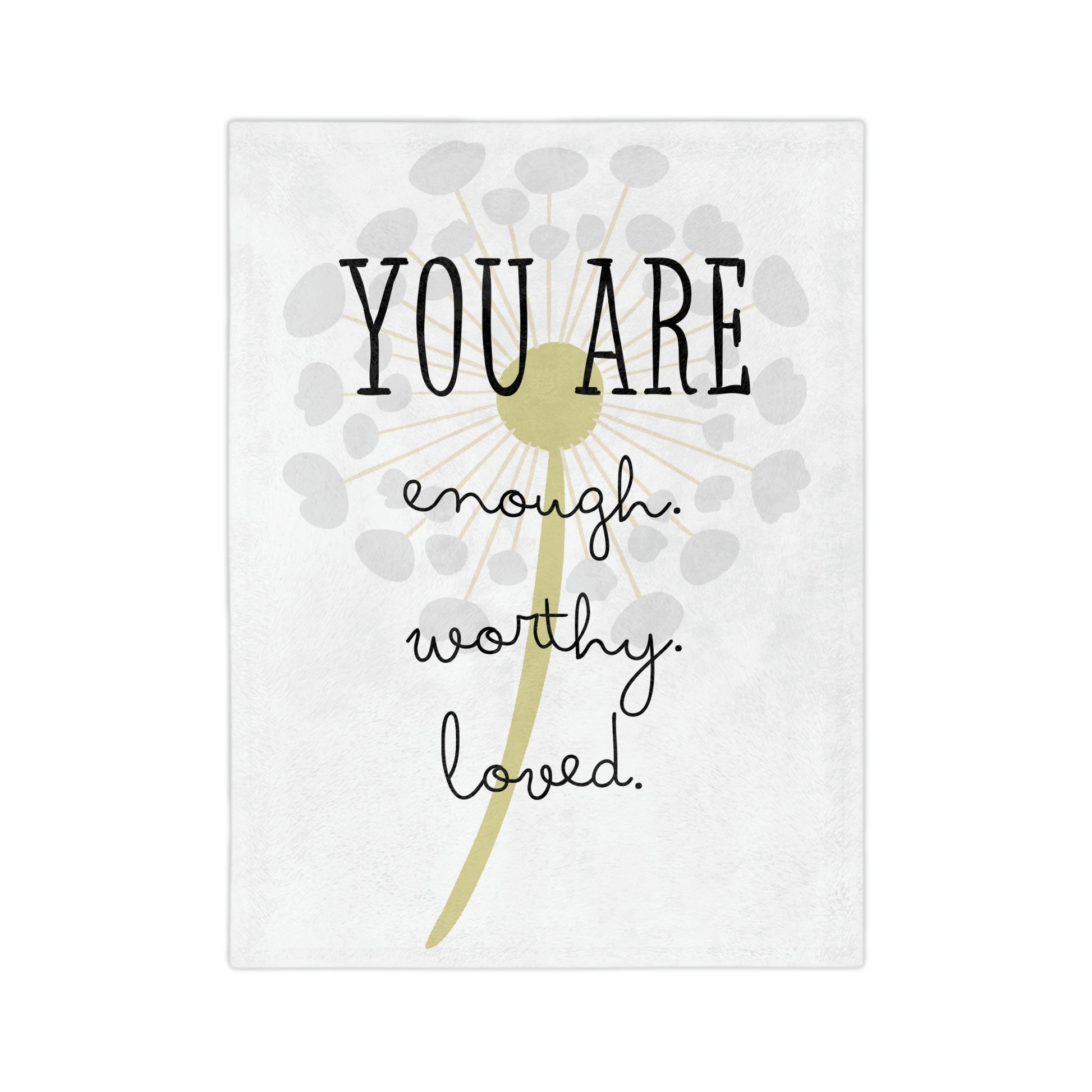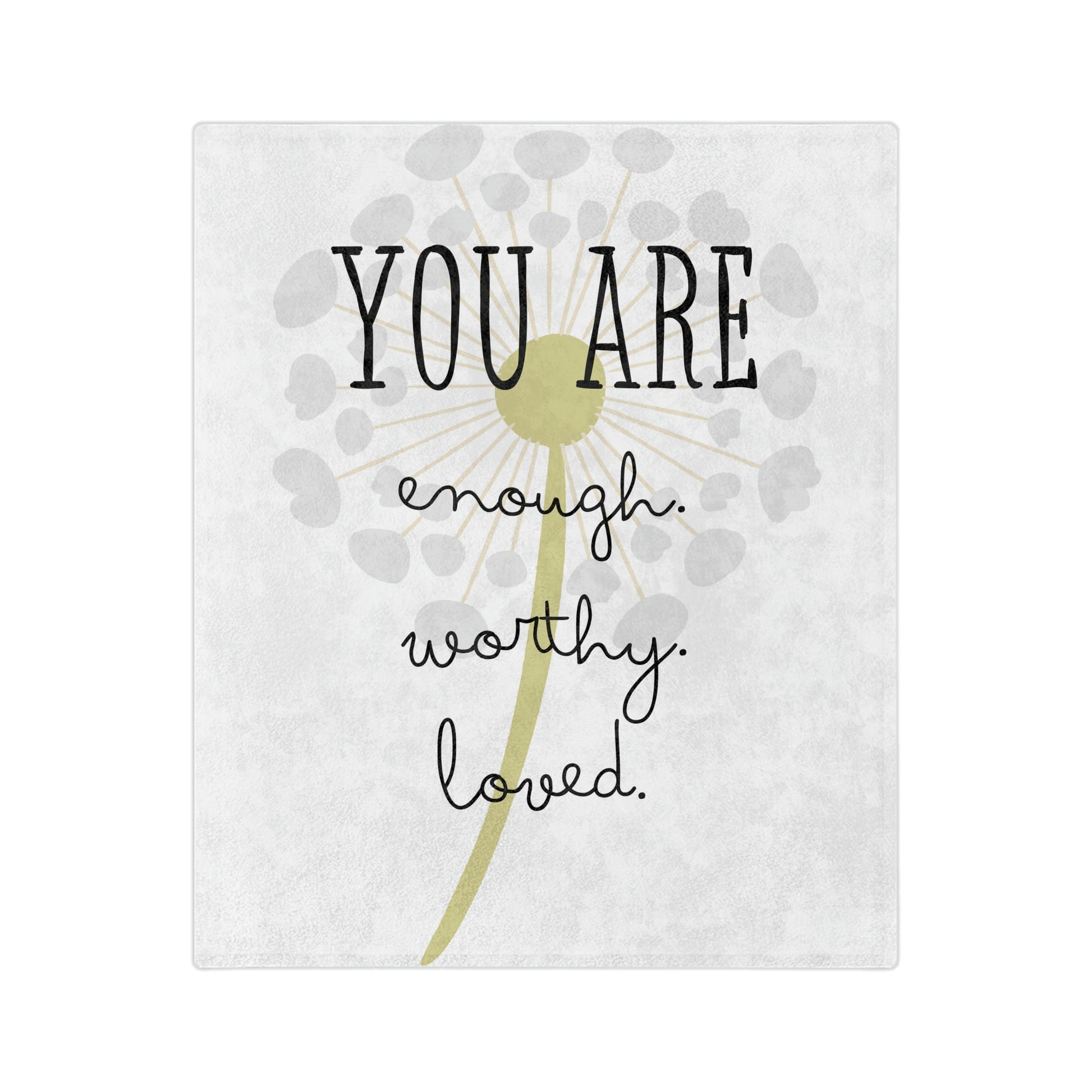 You Are...Enough, Worthy, Loved Blanket; Cozy Velveteen Minky Blanket