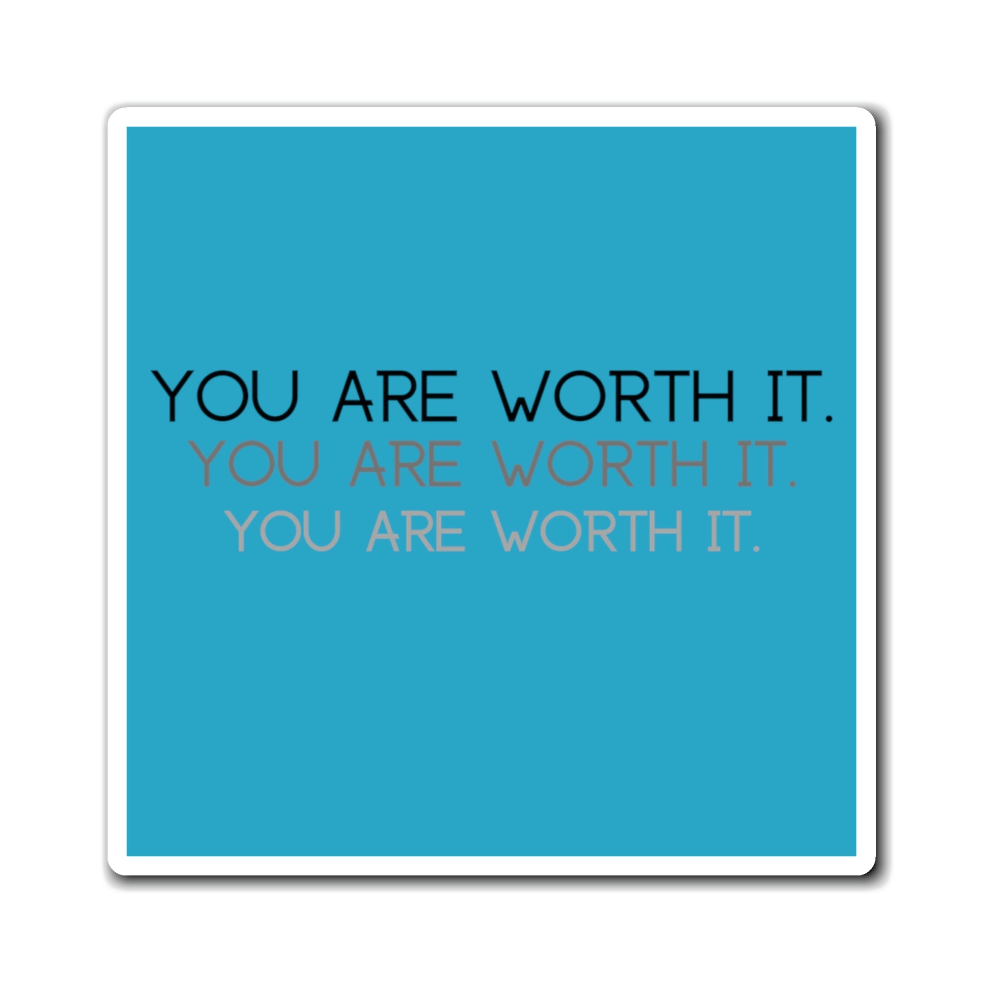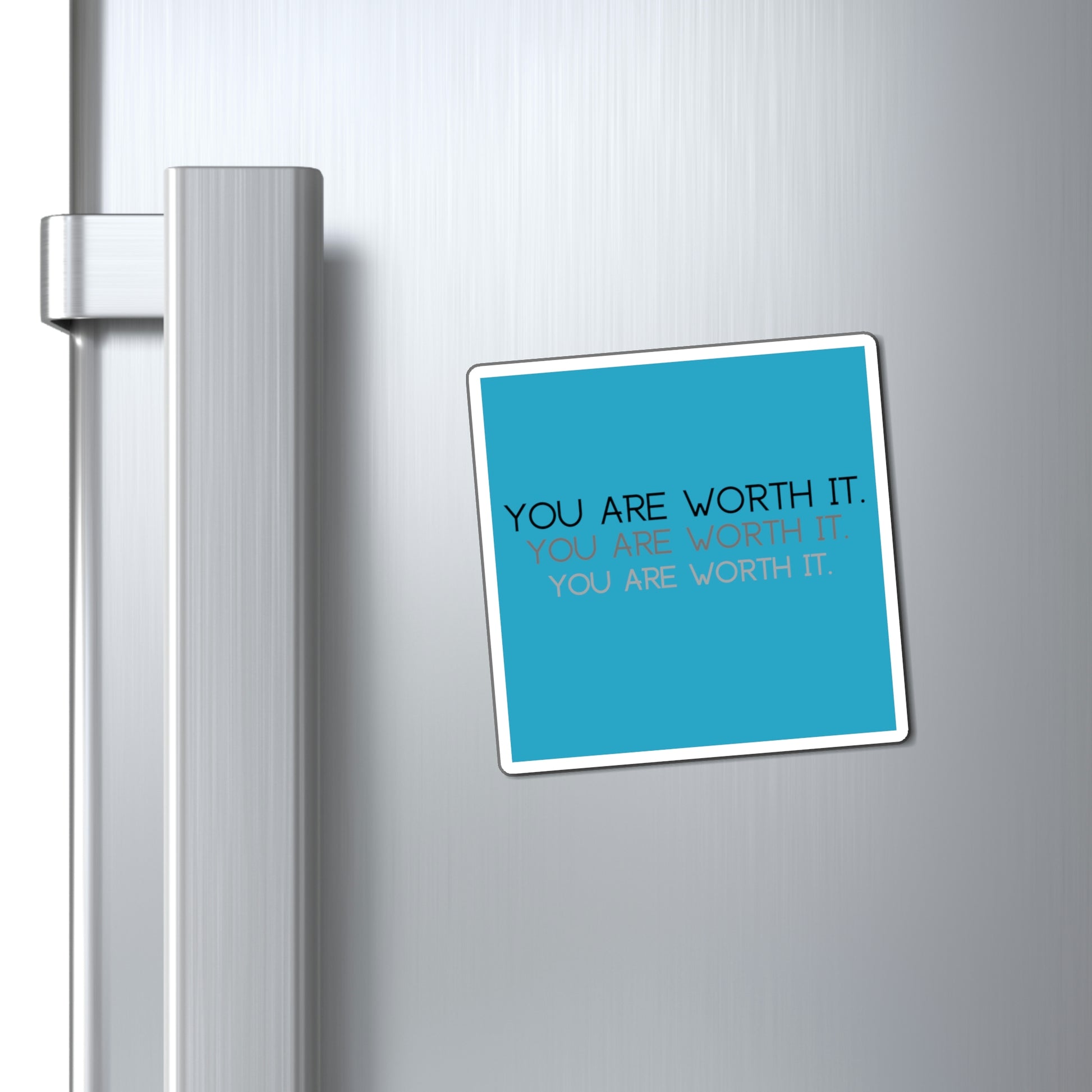 Strong, fast holding magnet with a meaningfu message. Place this lovely little reminder anywhere metallic! You are worth it in a minimalist design.