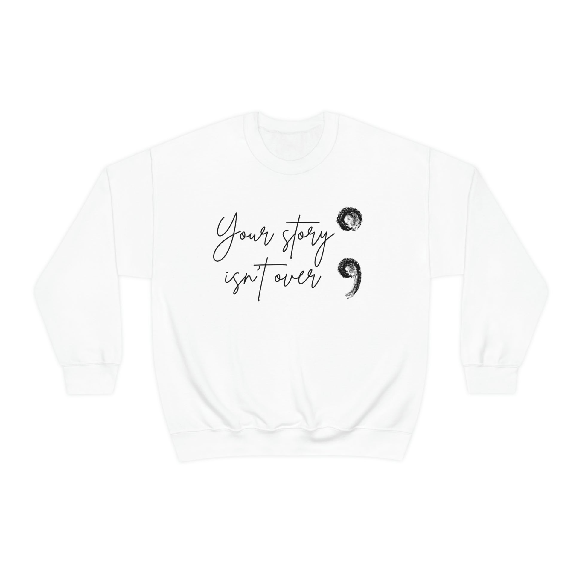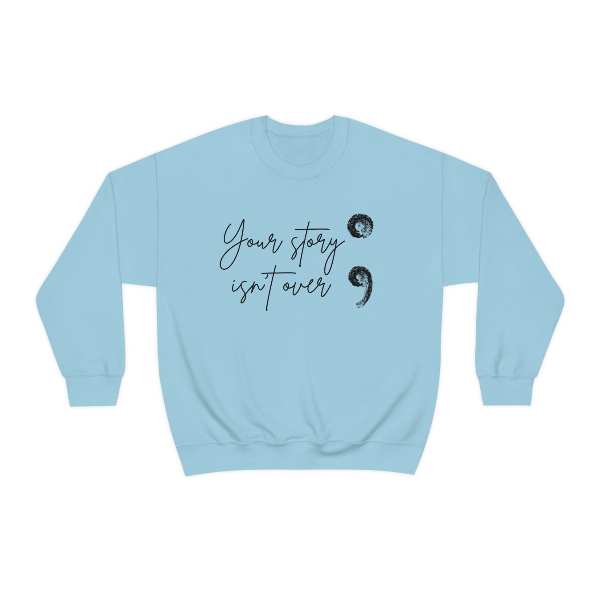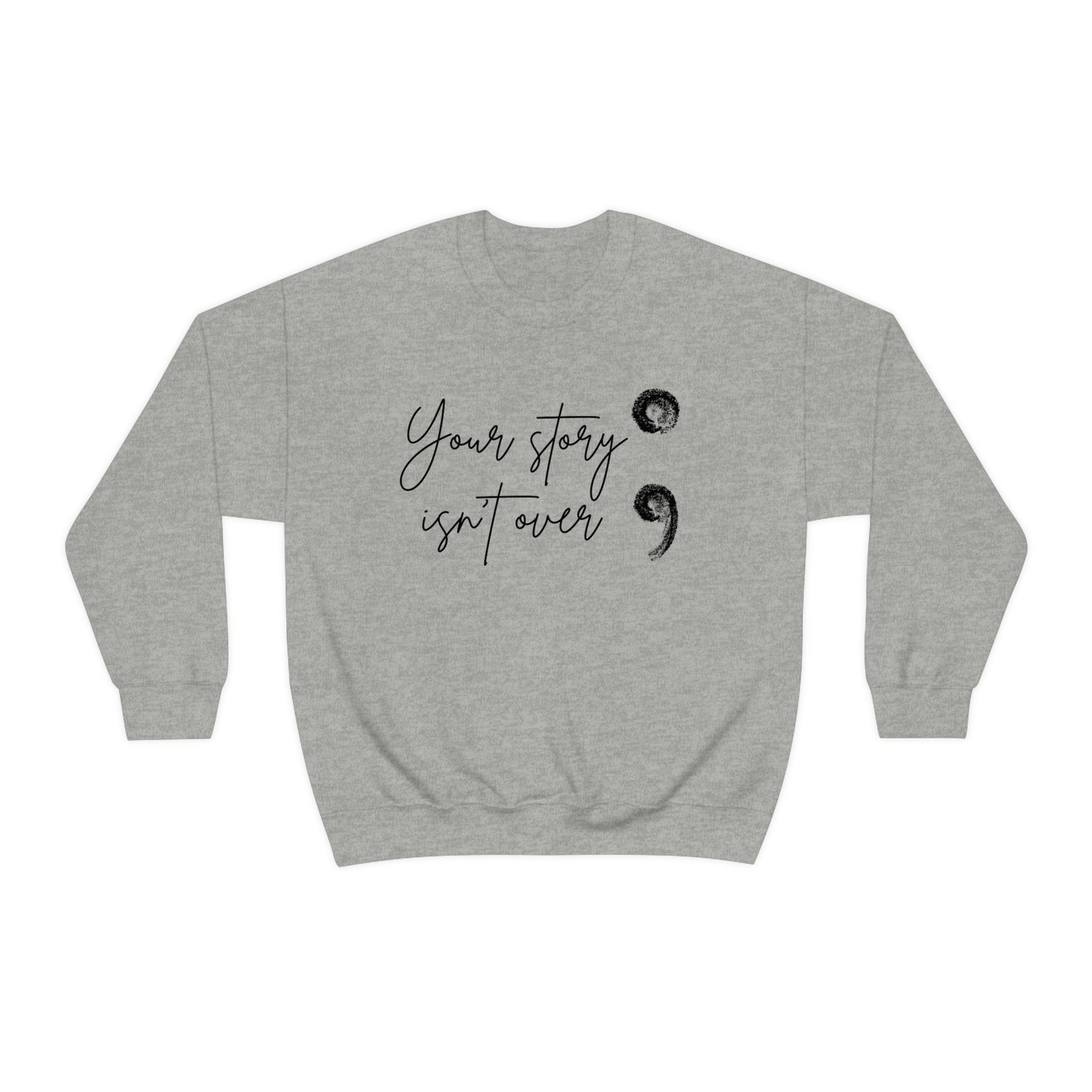 Your Story Isn’t Over Crew Neck Sweatshirt; Suicide Awareness Sweatshirt; Semicolon Sweatshirt