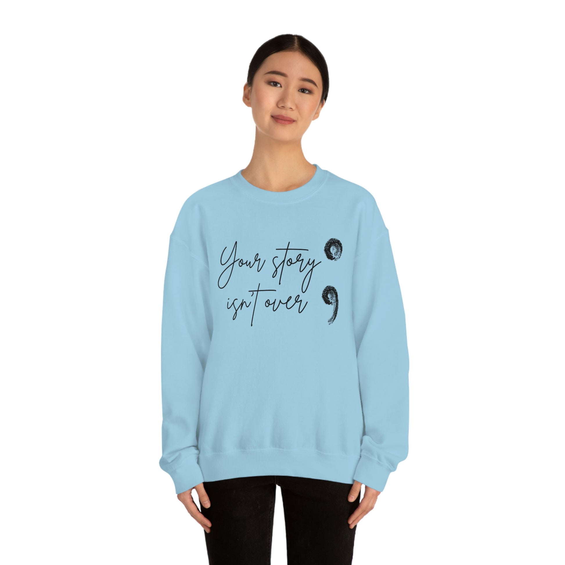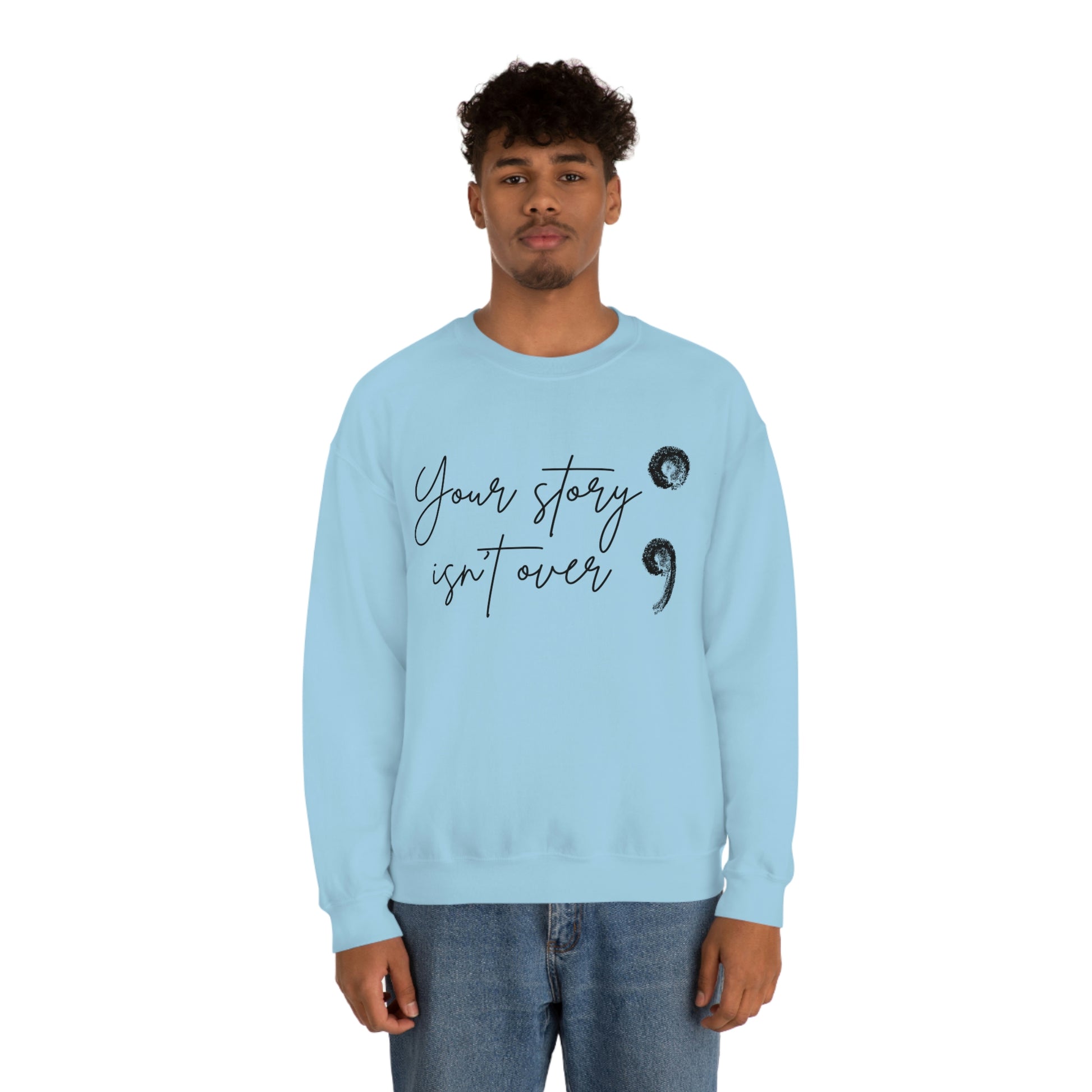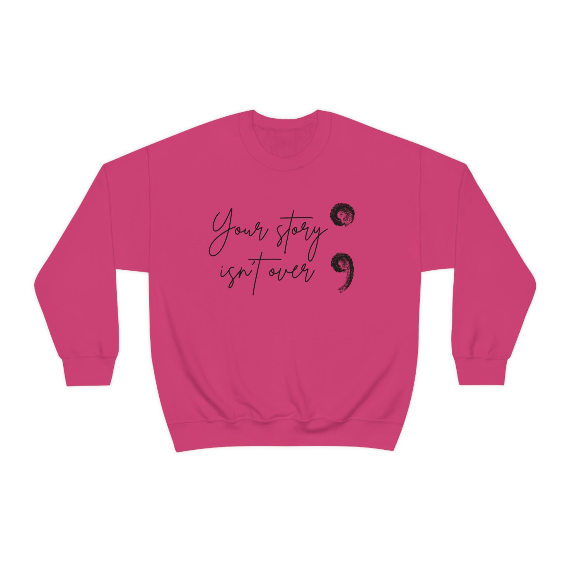 Your Story Isn’t Over Crew Neck Sweatshirt; Suicide Awareness Sweatshirt; Semicolon Sweatshirt